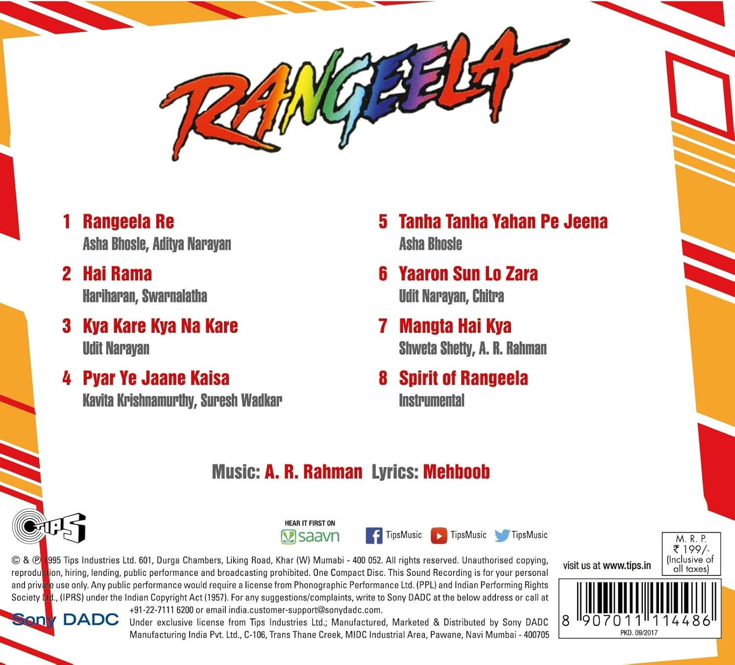 Spirit Of Rangeela / Rahman's first hindi movie with an original score, as the previous ones were.